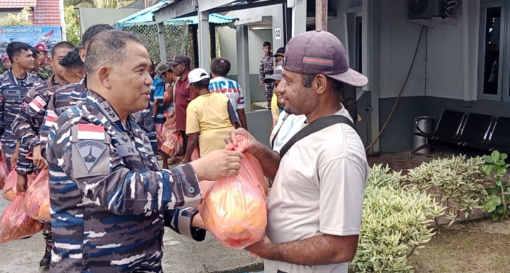 Tidak berhenti pada pembinaan satuan, Dankodaeral X juga menebarkan kasih dan kepedulian bagi masyarakat sekitar. Sebanyak 75 paket sembako diserahkan langsung kepada masyarakat Orang Asli Papua (OAP) di Kampung Samabusa wujud nyata kepedulian TNI AL untuk meringankan beban ekonomi dan mempererat jalinan kebersamaan antara prajurit dan rakyat.