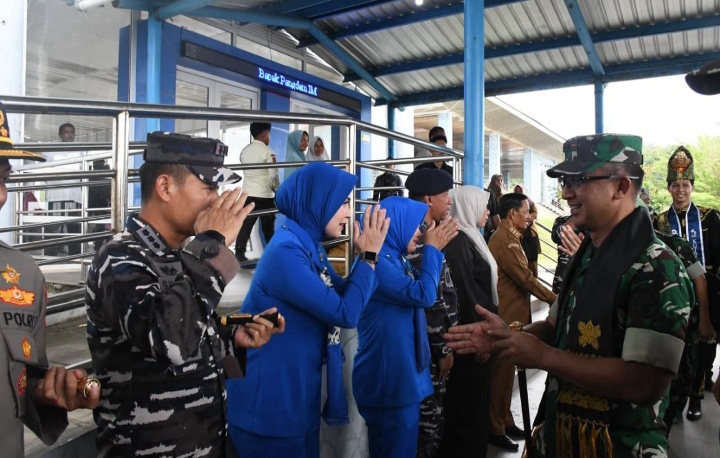 TNI AL, Sabang, Swaragemati.id – Komandan Pangkalan TNI AL (Danlanal) Sabang Kolonel Laut (P) Sadimin, S.E., M.Tr. Opsla., didampingi Ketua Cabang 3 Daerah Kodaeral I Gabungan Jalasenastri Koarmada RI Ny. Widya Sadimin menyambut kedatangan Panglima Kodam Iskandar Muda (Pangdam IM) Mayjen TNI Joko Hari Susilo, S.I.P., beserta rombongan di Pelabuhan Balohan, Kecamatan Sukajaya, Kota Sabang, Senin (29/09/2025).