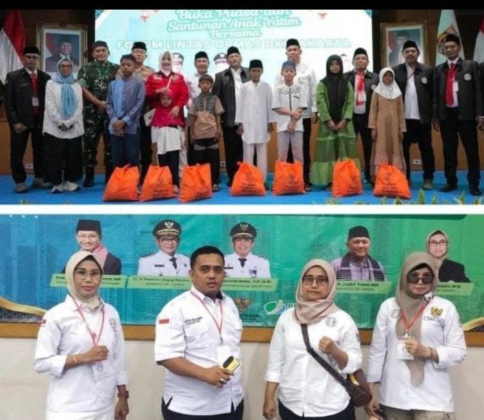 Forum Lintas Ormas (FLO) Daerah khusus Jakarta menggelar buka puasa dan santunan anak yatim di lantai 14 Ruang Bahari, Jumat (14/3/2025).