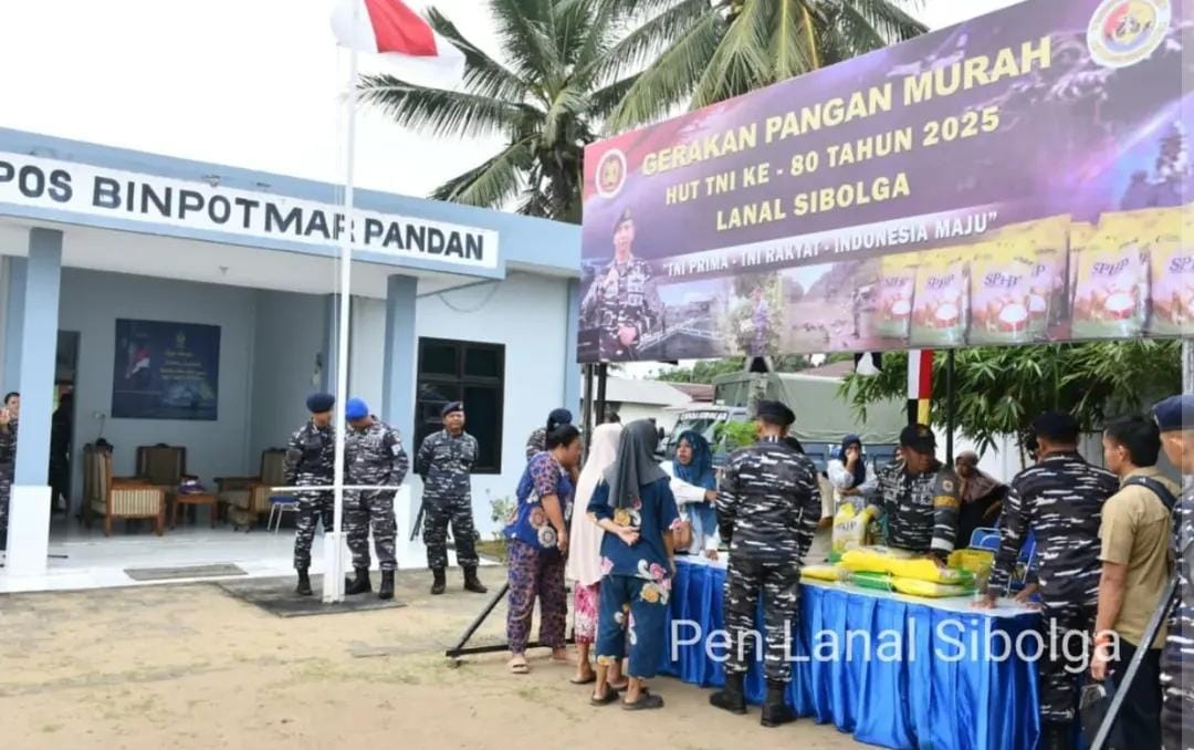 “Melalui Gerakan Pangan Murah ini, TNI ingin hadir ditengah-tengah rakyat dengan memberikan manfaat langsung, sejalan dengan tema HUT Ke-80 TNI Tahun 2025 yaitu TNI Prima-TNI Rakyat-Indonesia Maju”, ujar Danlanal Sibolga.