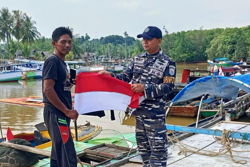 Pembagian Bendera Merah Putih dipimpin oleh Pasops Lanal Banjarmasin Mayor Laut (P) Tri S., dan anggota Babinpotmar