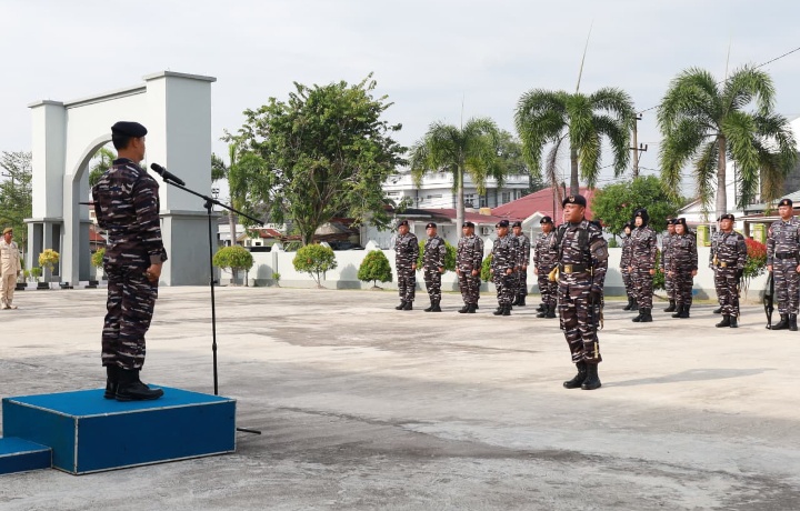 TNI AL, Dumai, Swaragemati.id – Pangkalan TNI Angkatan Laut (Lanal) Dumai melaksanakan upacara bendera rutin tanggal 17 bulan berjalan di Lapangan Apel Markas Komando (Mako) Lanal Dumai, Jalan Yos Sudarso No. 01, Kota Dumai, Jumat (17/10/2025).